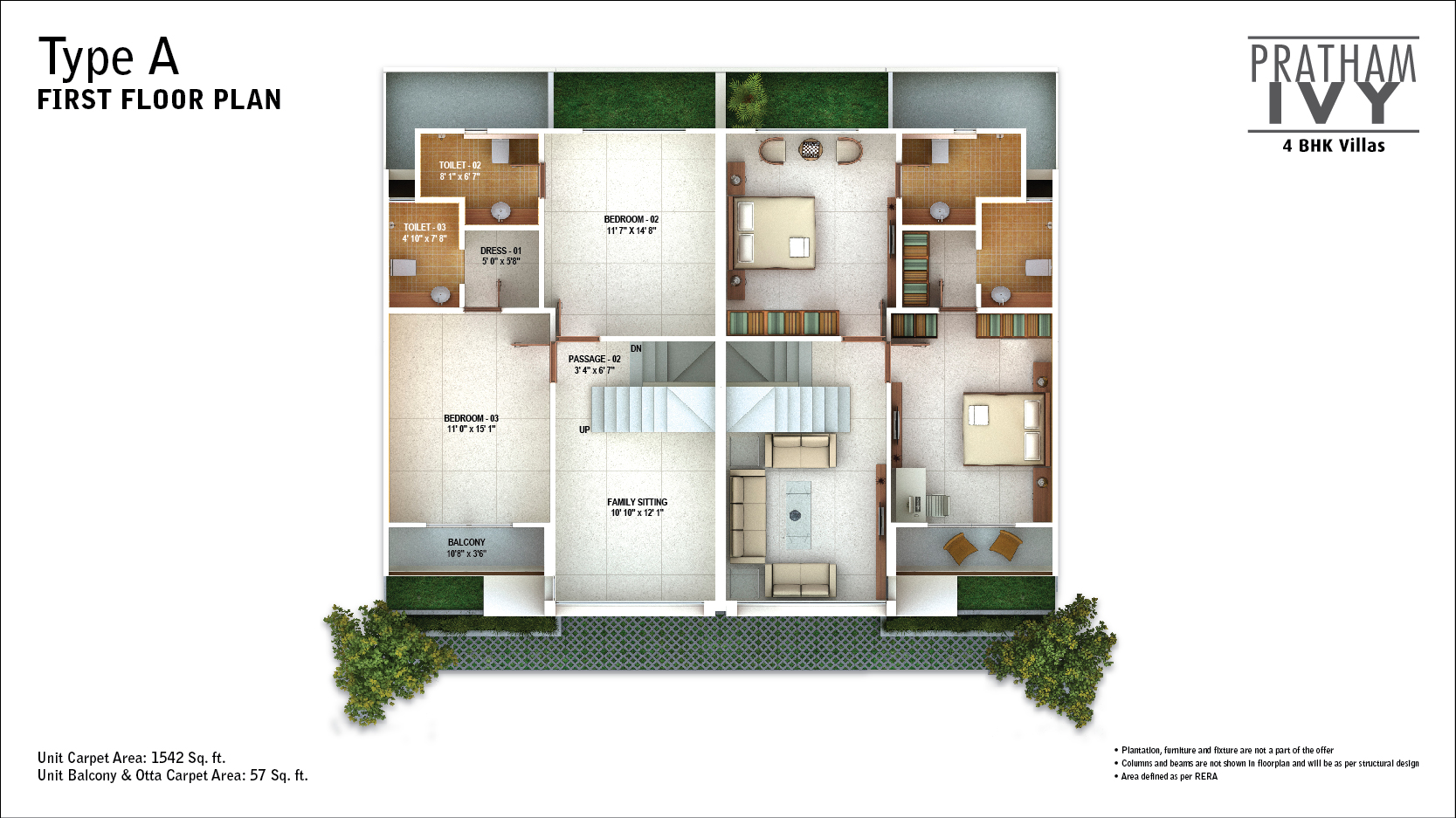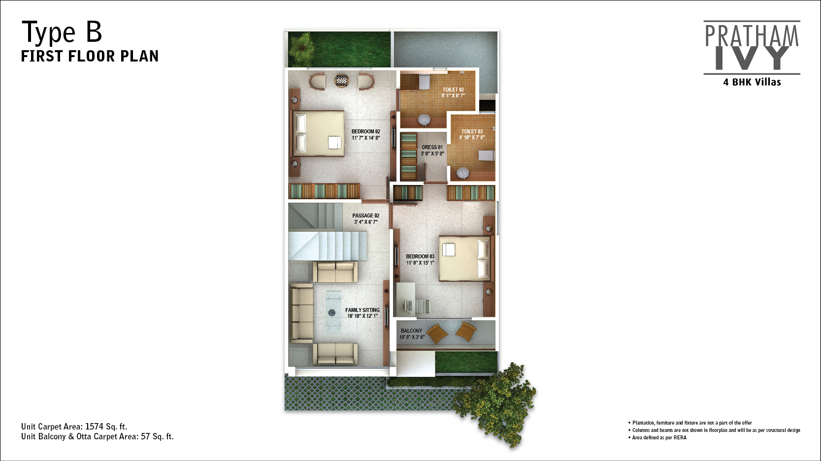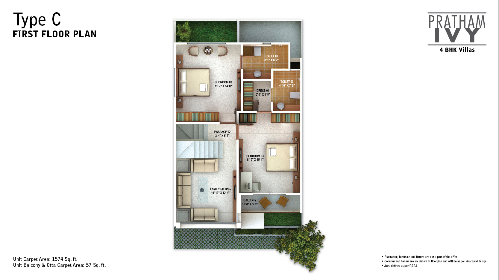 Pratham Ivy features a charming brick façade that exudes an old world charm. The artistic jaali creates a magical pattern on the home, while also acting as a sun shield to keep the home cool. The space is designed with great thought to keep each home brightly lit and well ventilated. Each 4BHK villa comes with a unique double-height family room for all your leisurely activities! And all of this in a peaceful, secure environment.