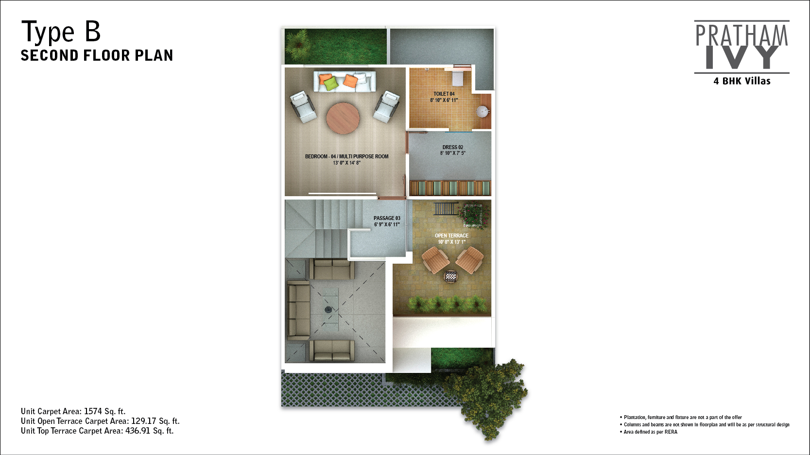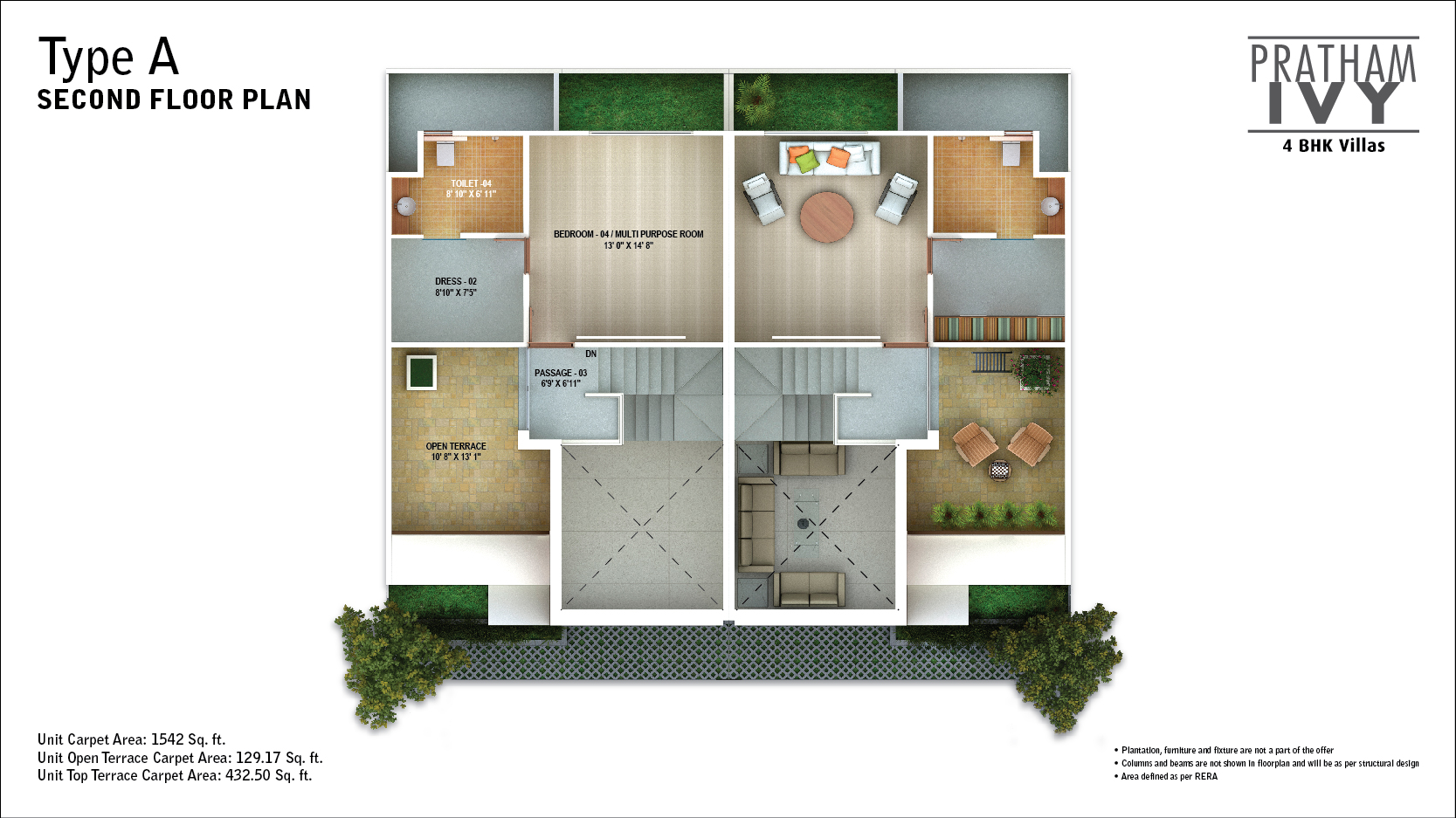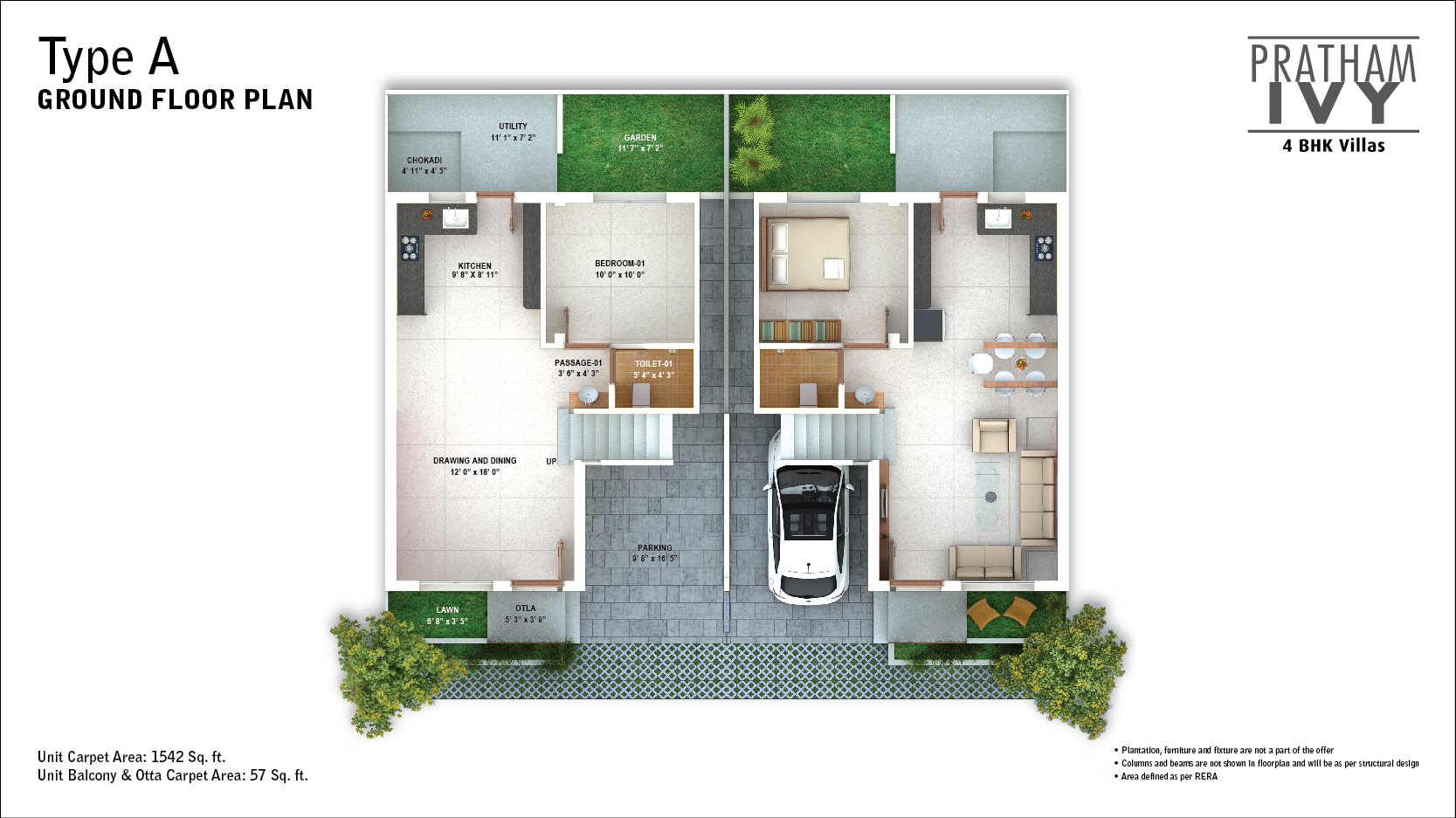 Pratham Ivy features a charming brick façade that exudes an old world charm. The artistic jaali creates a magical pattern on the home, while also acting as a sun shield to keep the home cool. The space is designed with great thought to keep each home brightly lit and well ventilated. Each 4BHK villa comes with a unique double-height family room for all your leisurely activities! And all of this in a peaceful, secure environment.
